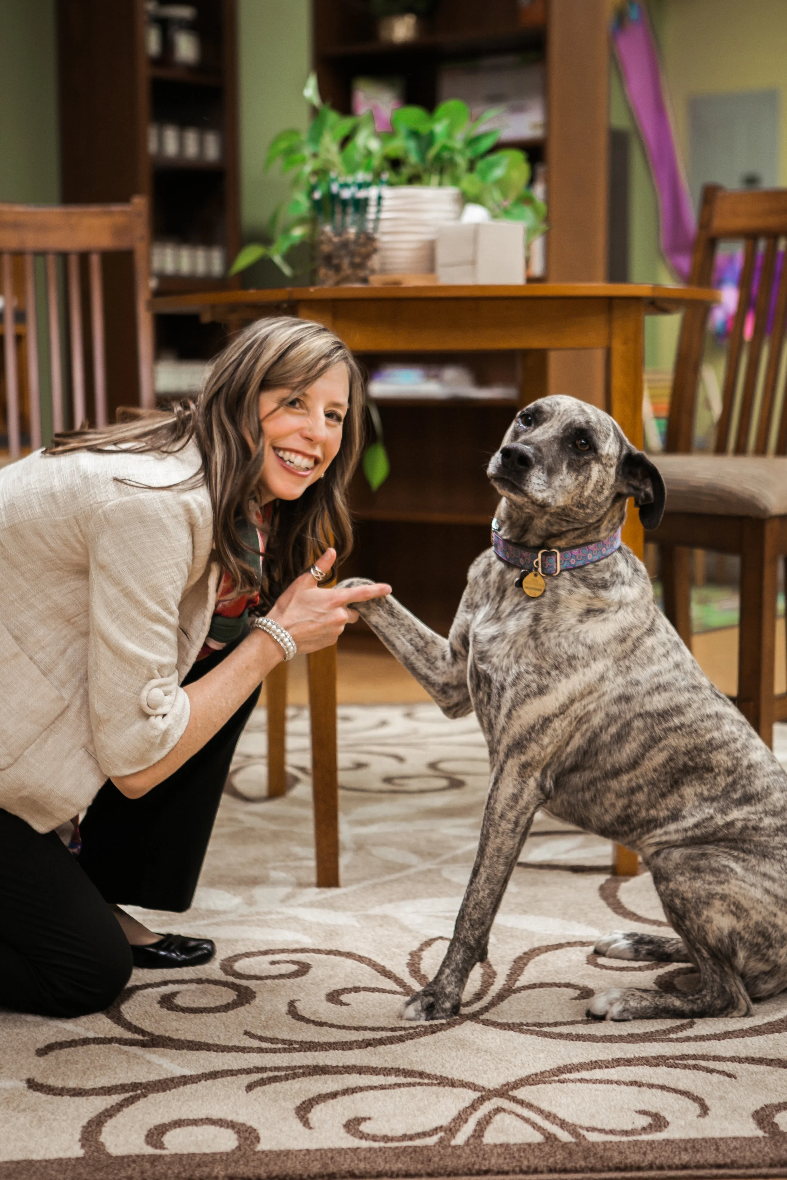 You’ll often see Langley out and about in Chico with Dr. Michelle. People frequently ask, “What type of dog is Langley?” She is part Great Dane and part Plott Hound. A unique mix that creates a beautiful coat and a healthy attitude.